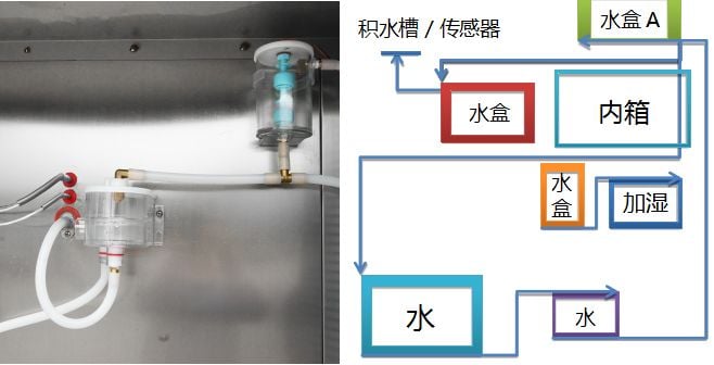 沒錯就是我們的水箱,常規(guī)試驗機用的都是不銹鋼焊接桶,長時間泡水的話會導致焊接點生銹,抽水上來會影響水路堵塞,從而使?jié)穸葋y跳,甚至是沒有濕度等情況。而這個水箱是集研發(fā)團隊聽取客戶意見后專門定制,是經過高溫老化,滲水性能,防撞擊等一系列檢測,用個十年五載的不會有太大改變。